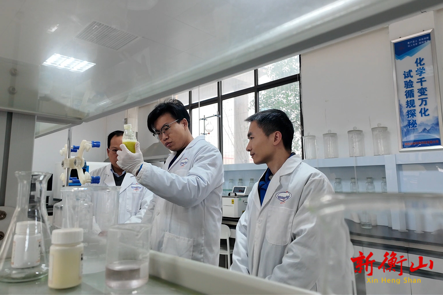 在位于衡山高新区的金裕环保科技有限公司实验室内,研发人员正在对一款漆雾凝聚剂产品进行测试。只见将药剂加入含漆废水中,经过摇晃后,水中的油漆残留便被迅速絮凝分离。而隔壁的中试平台车间里,自动化生产线正有序运转,将实验室配方转化为规模化量产的成品。