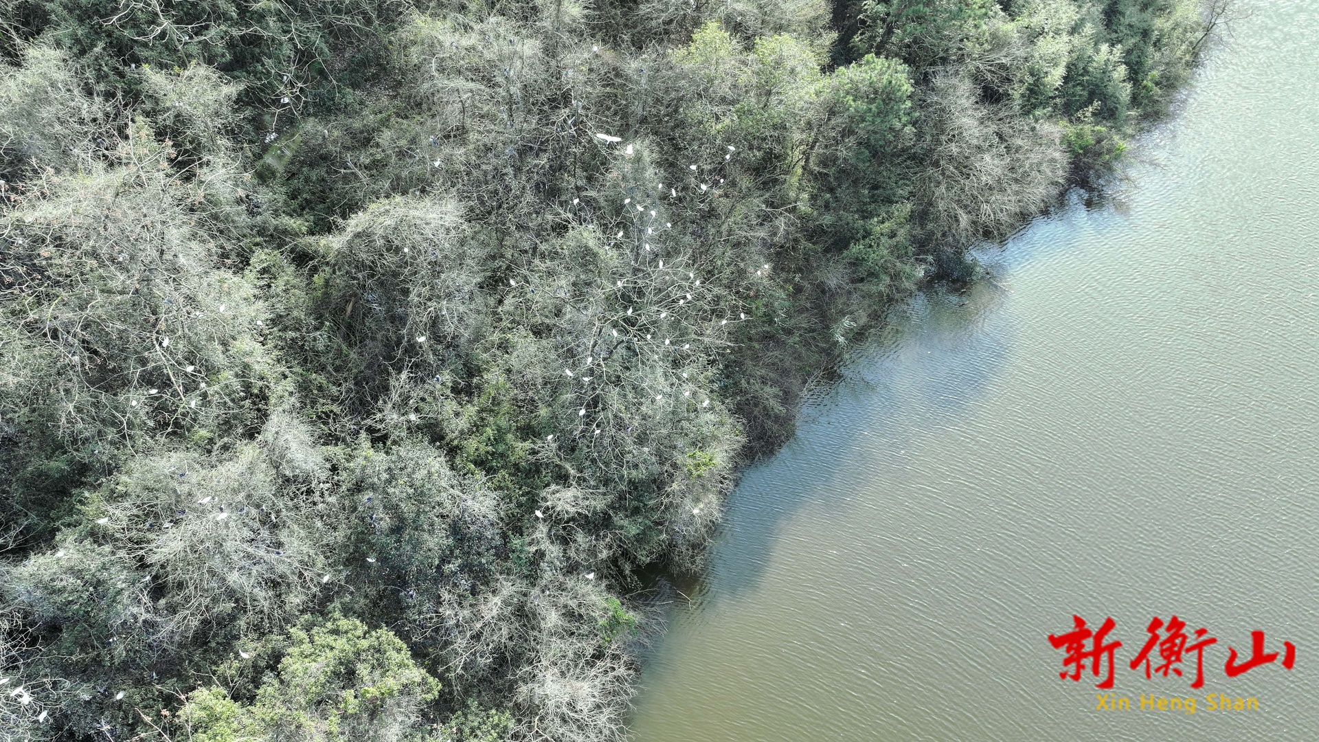 绿树葱茏,鹭鸟翩跹。在湖南衡山萱洲国家湿地公园的一处山头,一幅动人的自然画卷正徐徐展开。枝头之上,洁白优雅的白鹭与羽色灰黑的夜鹭比邻而居、和谐共处。它们或衔枝筑巢,孕育新生命;或驻足守望,静待水中猎物;或振翅嬉戏,勾勒出春日里最灵动的生态景观。