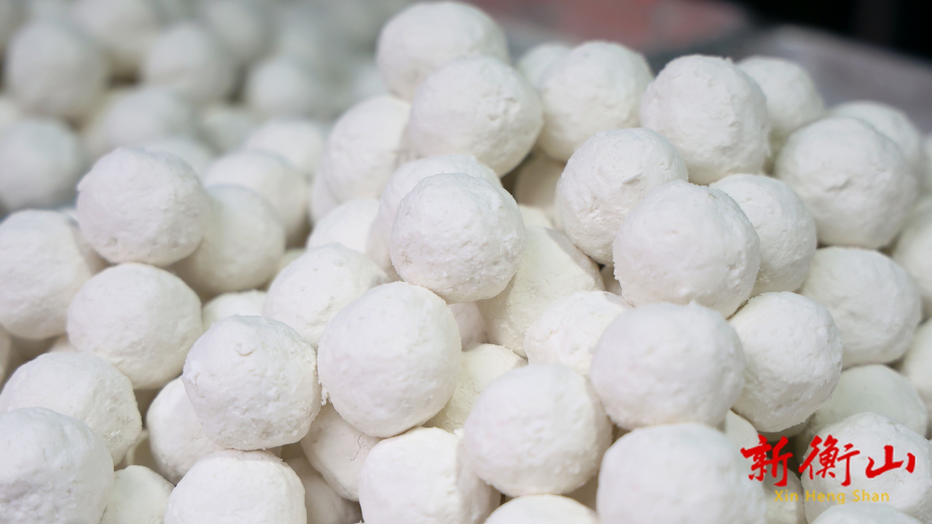 记者在衡山县城某超市门口看到,手工元宵摊位前围满了顾客,几位师傅正忙着将方块形的馅料,投入盛满糯米粉的滚筒机中。随着机器的匀速转动,馅料芯在纷飞的糯米粉中不断翻滚、碰撞,就如同滚雪球一般,原本棱角分明的馅料块,逐渐披上了厚实的外衣,变成了一个个圆润饱满、瓷实诱人的“大白胖子”。