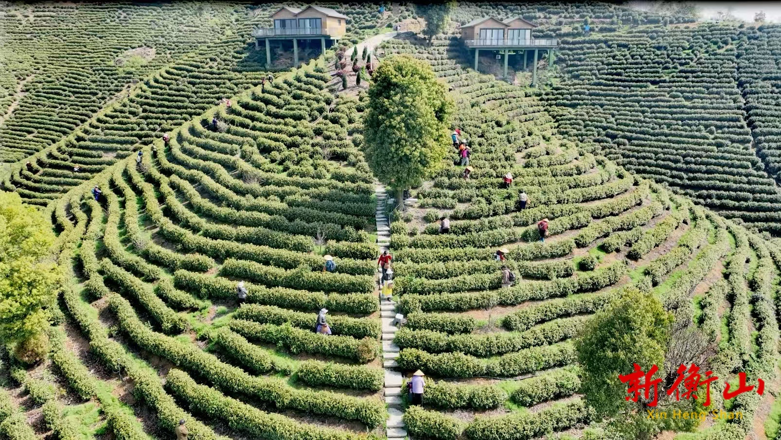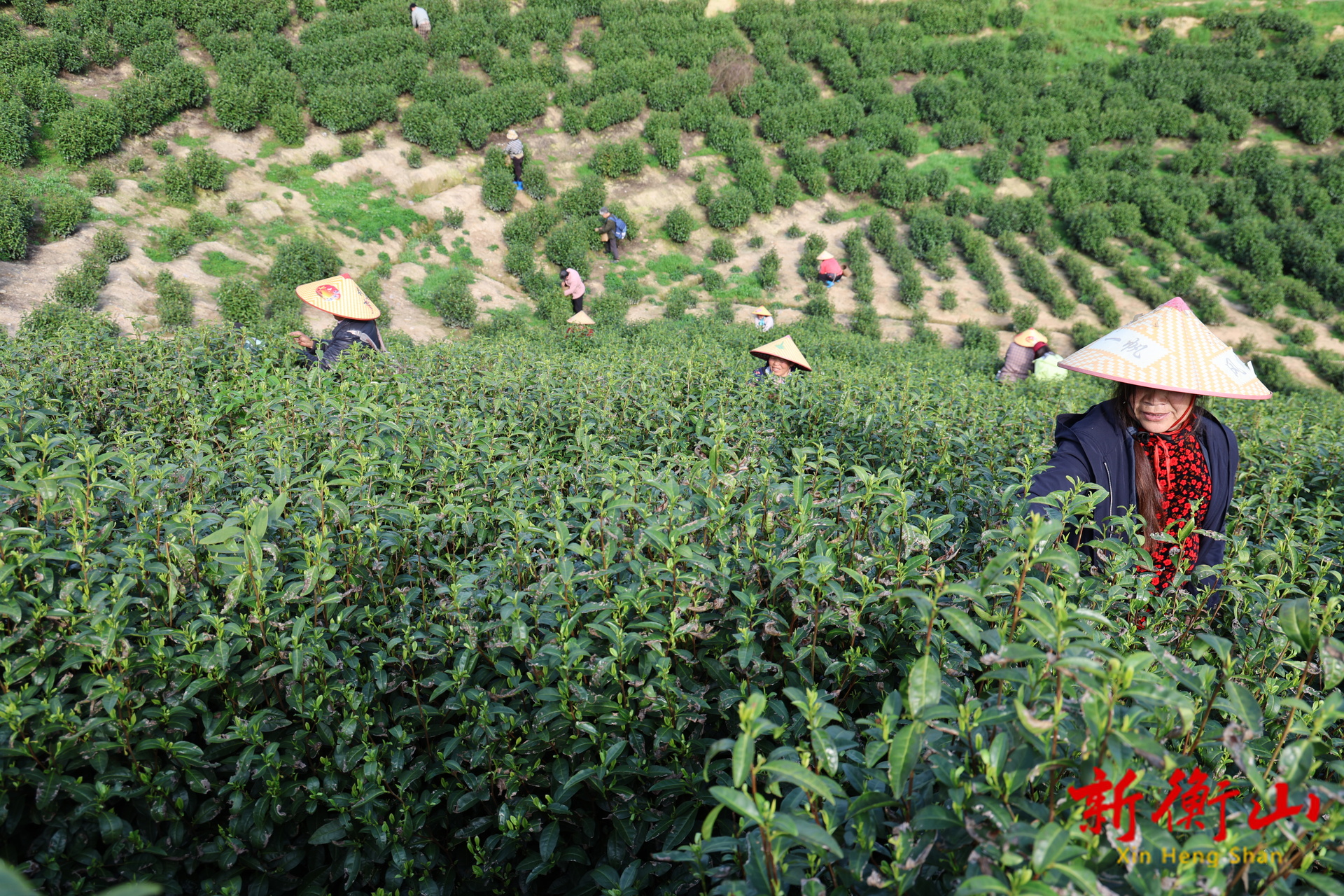 茶农们穿梭茶垄间采茶