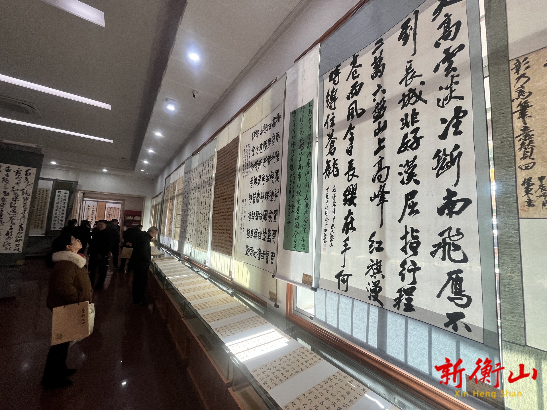湘水悠悠,文脉绵长,文艺赋能,墨韵衡山。展览由县文联、县文旅广体局主办,县书法家协会承办,县文化遗产事务中心协办。此次作品展与《墨韵衡山》作品集的推出,既是向衡山源远流长、文脉传承致敬的文化仪式展示,更是接受衡山书法创作生态集中检阅的实践汇报。展览共展出会员作品近百幅,涵盖楷、行、隶、草等多种书体,既有传统经典的传承,也有时代精神的表达,充分展现了衡山书法家的艺术素养与创作活力。主办方希望通过这些灵动的线条、氤氲的墨色,能进一步唤醒群众心中对国粹文化的记忆和追求,推动衡山文艺赋能书法艺术繁荣发展,让书法艺术在新时代绽放出更加绚丽的光彩。